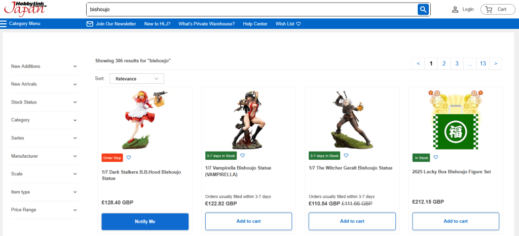 The site is quite busy (www.hlj.com) as they have a LOT of goods on offer. You can just search for Bishoujo though in the search bar and instant list of statues you might be interested in.
